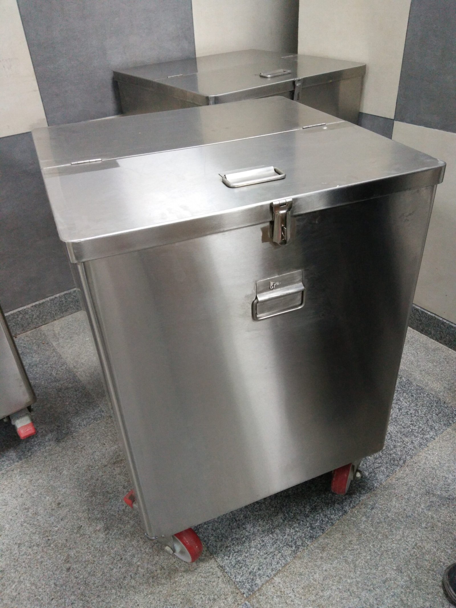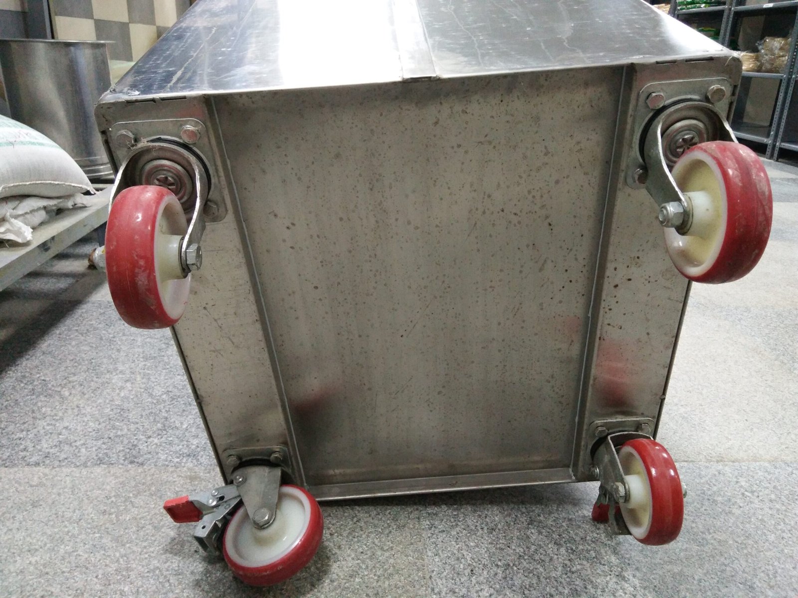Stainless steel grain kitchen trolley engineered for hygienic storage, smooth mobility, corrosion resistance, and heavy-duty daily use.